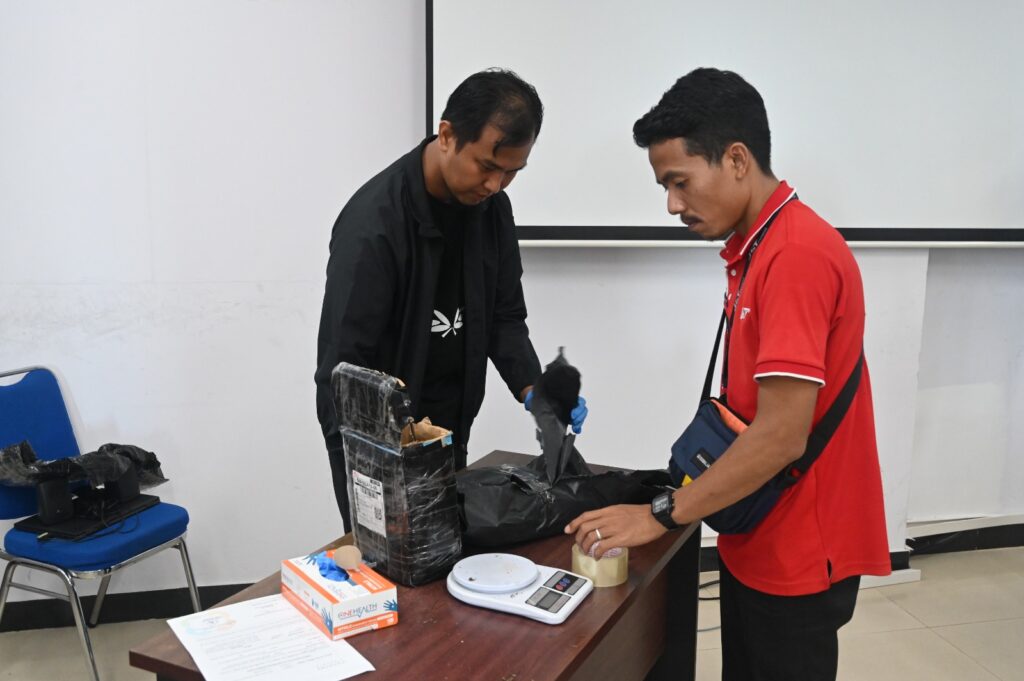 Paket tersebut diketahui dikirim oleh pengirim berinisial BH asal Kabupaten Kampar dengan tujuan penerima berinisial ZP di Kabupaten Buleleng, Provinsi Bali. Barang temuan selanjutnya diamankan ke Kantor Avsec Bandara SSK II menggunakan kendaraan patroli bandara untuk pemeriksaan lanjutan.