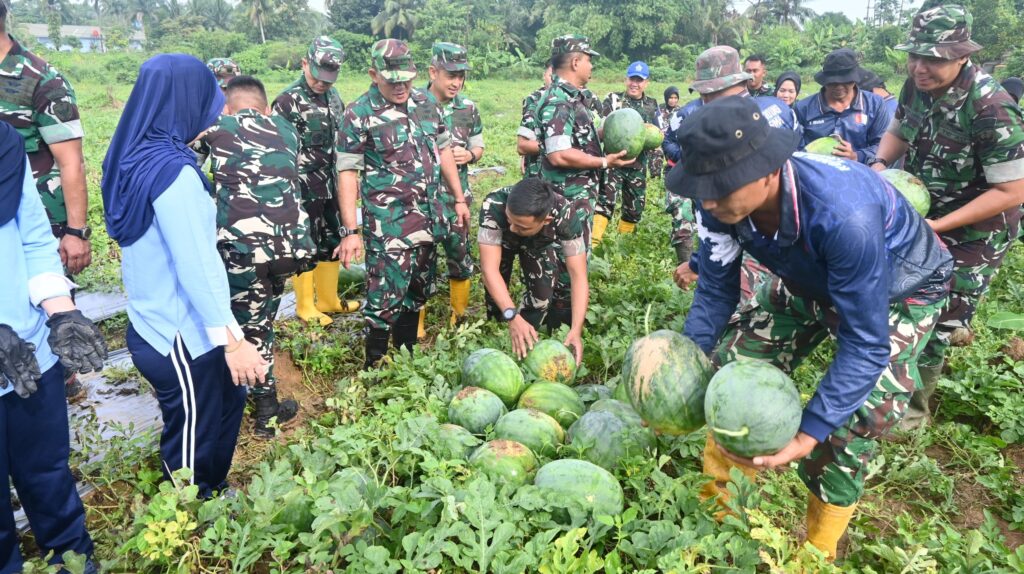 “Lahan seluas 5 hektare ini kami kelola secara bertahap untuk budidaya semangka. Pada tahap pertama, lahan seluas 2,5 hektare telah berhasil dipanen dengan hasil mencapai 40 ton semangka jenis prime lonjong impor,” ucap Danlanud SMH.