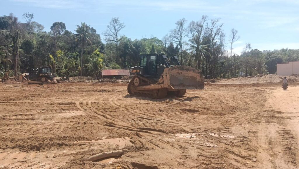 Di area sisi kiri gereja yang berbatasan langsung dengan sungai, satu unit excavator digunakan untuk mengambil dan memuat material sirtu sebagai bahan pendukung pembangunan Jembatan Armco. Material tersebut selanjutnya diangkut menggunakan dump truck menuju lokasi pemasangan jembatan. Sementara itu, di sisi kanan gereja, bulldozer terus melakukan perataan dan pembersihan sisa material banjir sehingga kondisi lingkungan semakin tertata.