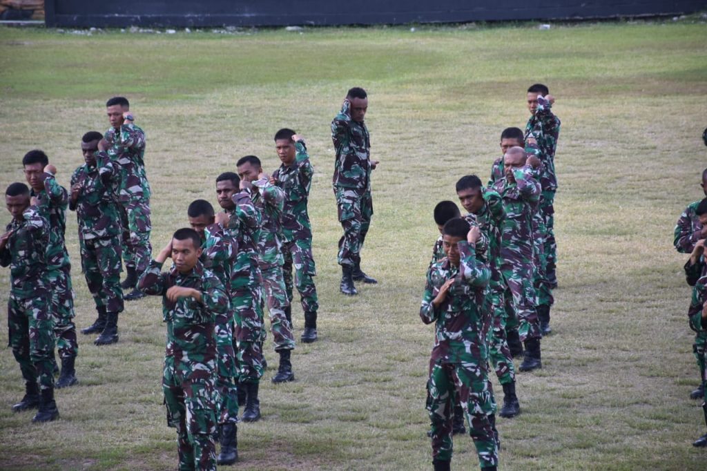 Cakra101, Manokwari.- Prajurit Kodam XVIII/Kasuari terus memperkuat kemampuan dalam Bela Diri Taktis (BDT) guna menjaga kekuatan dan kesiapsiagaan dalam menghadapi berbagai ancaman yang semakin kompleks. Latihan intensif ini dilatihkan secara rutin dilapangan Makodam, Manokwari, sebagai bagian dari program pembinaan dan peningkatan kemampuan prajurit, untuk menjaga kekuatan serta kesiapsiagaan dalam menghadapi situasi dinamis di wilayah Papua Barat, pada Kamis (10/10/2024).