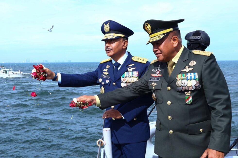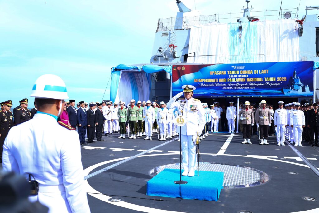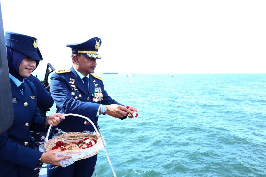 JAKARTA, Cakra101.com – Wakil Kepala Staf Angkatan Udara (Wakasau) Marsdya TNI Ir. Tedi Rizalihadi S., M.M., menghadiri Upacara Tabur Bunga dalam rangka memperingati Hari Pahlawan tahun 2025 di perairan Teluk Jakarta, Senin (10/11/2025).