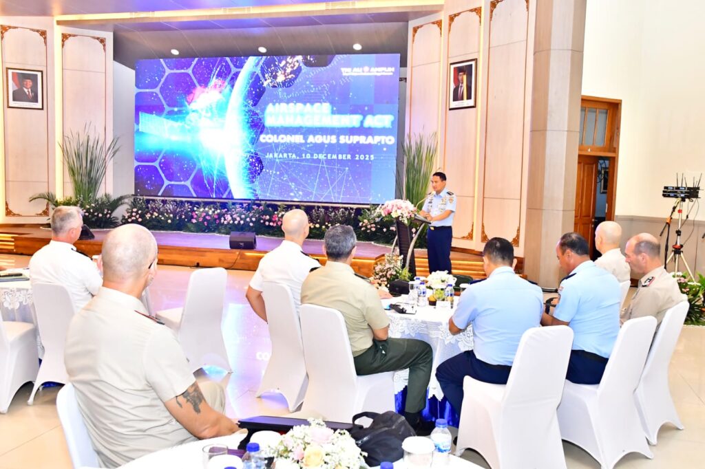 JAKARTA, Cakra101.com – Staf Intelijen TNI Angkatan Udara (Sintelau) menggelar Sosialisasi Undang-Undang Pengelolaan Ruang Udara (PRU) dan Prosedur Flight Clearance kepada para Atase Militer negara sahabat di Ballroom Griya Ardhya Garini, Jakarta, Rabu (10/12/2025).