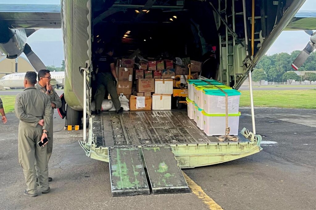 Danlanud SMH Kolonel Pnb Zulfikri Arif Purba, S.Sos., MS.(NSSS)., menjelaskan sebelumnya, pada Jumat (5/12/2025) telah dilakukan pengiriman gelombang pertama menggunakan C-130 Hercules A-1333 dari Skadron Udara 33 dengan muatan 14 ton.