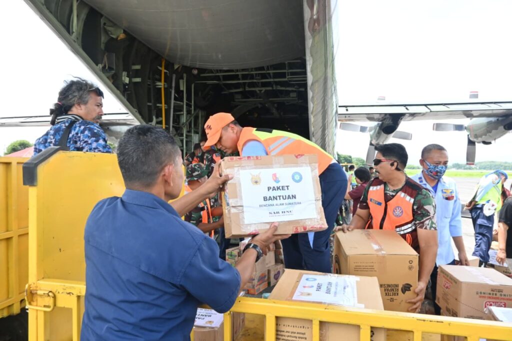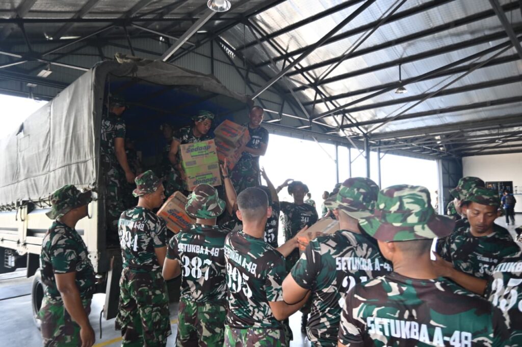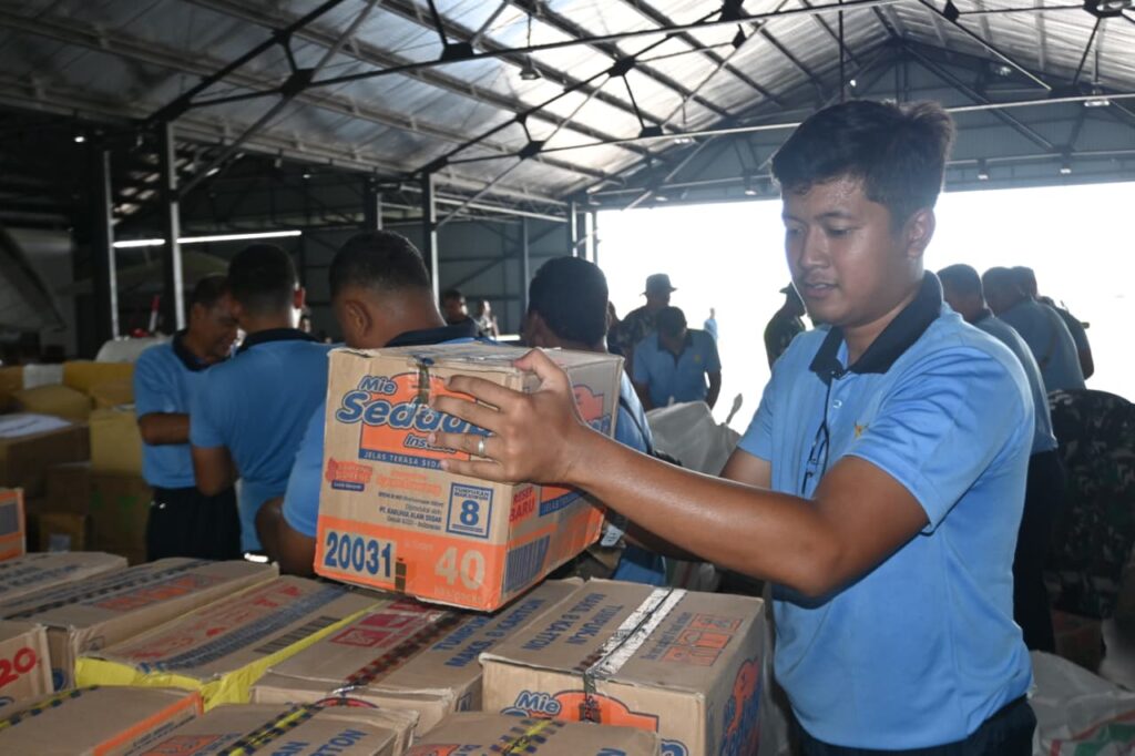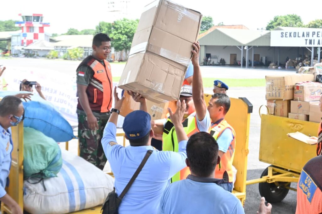 Total bantuan yang telah terkumpul di shelter Lanud mencapai 7 ton, terdiri atas sembako, pakaian, obat-obatan, dan perlengkapan lainnya yang berasal dari masyarakat, SAR Human Nature Care (HNC), serta unsur TNI. Sebagian dari bantuan itu dikirim terlebih dahulu sementara sisanya menunggu jadwal keberangkatan berikutnya.