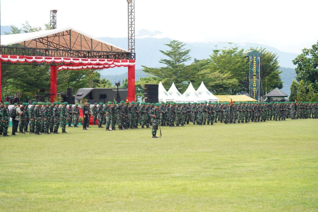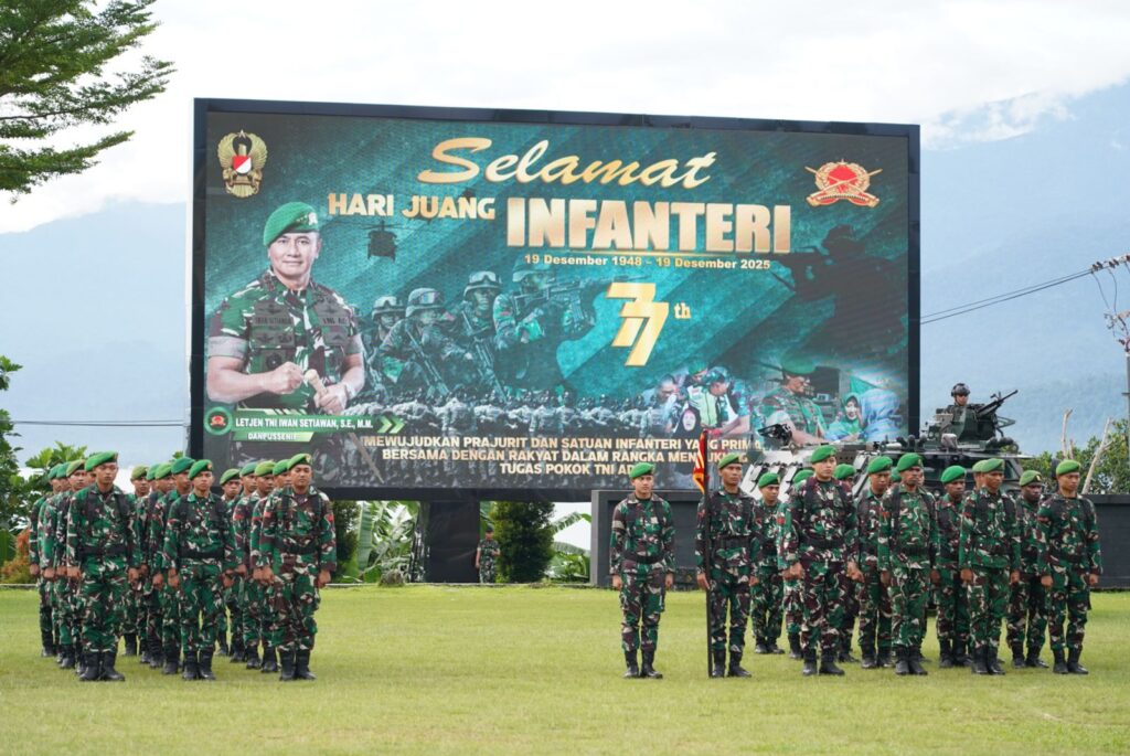 MANOKWARI, Cakra101.com – Hari Juang Infanteri merupakan momentum bersejarah untuk meneguhkan jati diri prajurit Infanteri sebagai garda terdepan TNI Angkatan Darat yang profesional, tangguh, dan manunggal dengan rakyat. Hari Juang Korps Infanteri ke-77 dilaksanakan di Lapangan Markas Kodam XVIII/Kasuari, Jumat (19/12/2025).