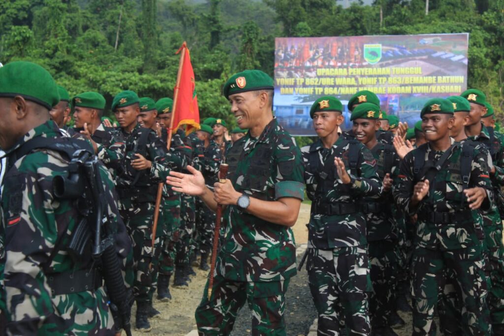 KAIMANA, Cakra101.com – Pangdam XVIII/Kasuari Mayjen TNI Christian Kurnianto Tehuteru memimpin Upacara Penyerahan Tunggul Yonif Teritorial Pembangunan (TP) kepada para Danyonif TP di Yonif TP 864/NN, Kabupaten Kaimana, Papua Barat, pada Kamis (15/1/2026). Upacara tersebut dihadiri pejabat Kodam XVIII/Kasuari dan Forkopimda Kabupaten Kaimana sebagai penegasan resmi eksistensi dan kehormatan satuan Yonif TP di wilayah Papua Barat dan Papua Barat Daya.
