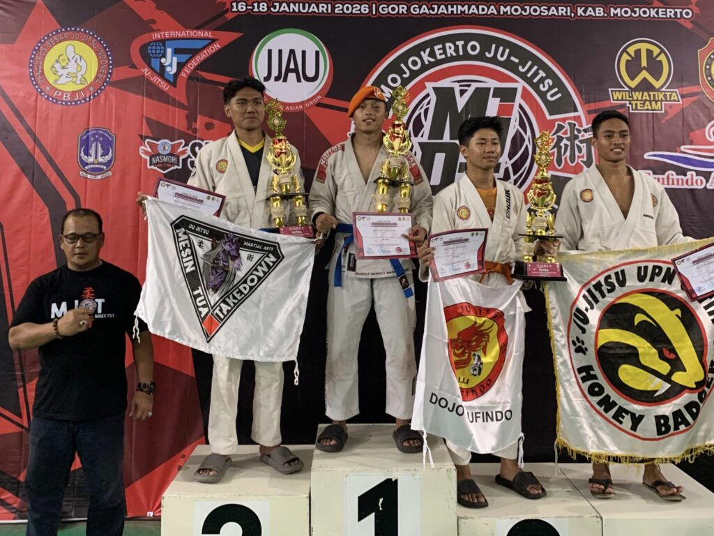 MOJOKERTO, Cakra101.com – Atlet jujitsu binaan Detasemen Markas (Denma) Mako Korps Pasukan Gerak Cepat (Korpasgat) TNI AU menorehkan prestasi membanggakan dalam ajang Mojokerto Jujitsu Open Tournament yang digelar di GOR Gajah Mada, Mojosari, Kabupaten Mojokerto, selama tiga hari, 16 sampai dengan 18 Januari 2026.