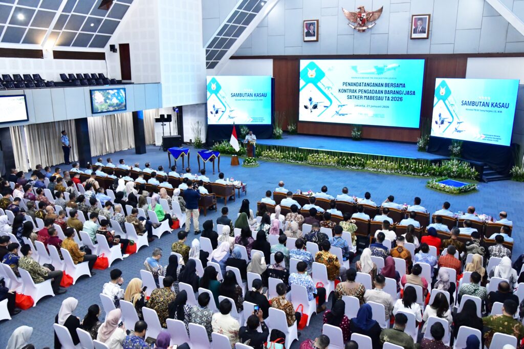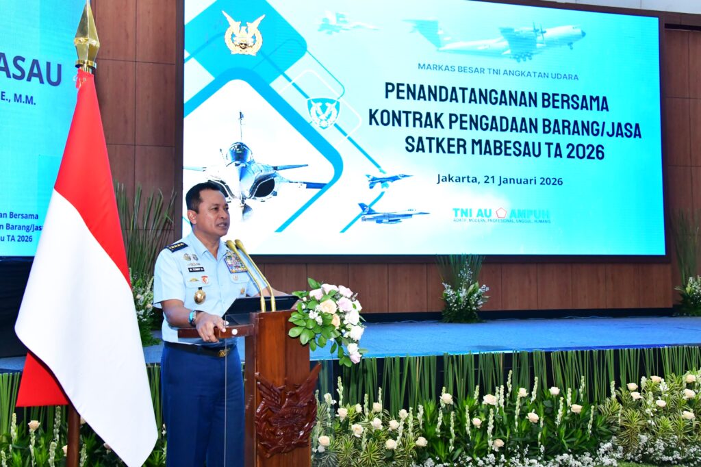 Hal tersebut disampaikan Kasau saat menghadiri Penandatanganan Bersama Kontrak Pengadaan Barang/Jasa Satker Mabesau TA 2026 di Gedung Serbaguna Suharnoko Harbani, Mabesau, Jakarta, Rabu (21/1/2026).
