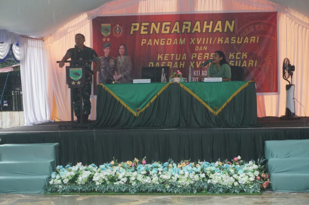 Didampingi Ketua Persit KCK Daerah XVIII/Kasuari Ny. Mevi Christian K. Tehuteru, Pangdam berdialog dengan prajurit, meninjau fasilitas satuan, serta membahas langkah peningkatan sarana pendukung tugas, termasuk transportasi, perumahan, kesehatan, dan komunikasi melalui koordinasi berjenjang. Pangdam juga mendorong pemanfaatan fasilitas secara bijak dan bernilai kemanusiaan bagi masyarakat sekitar.