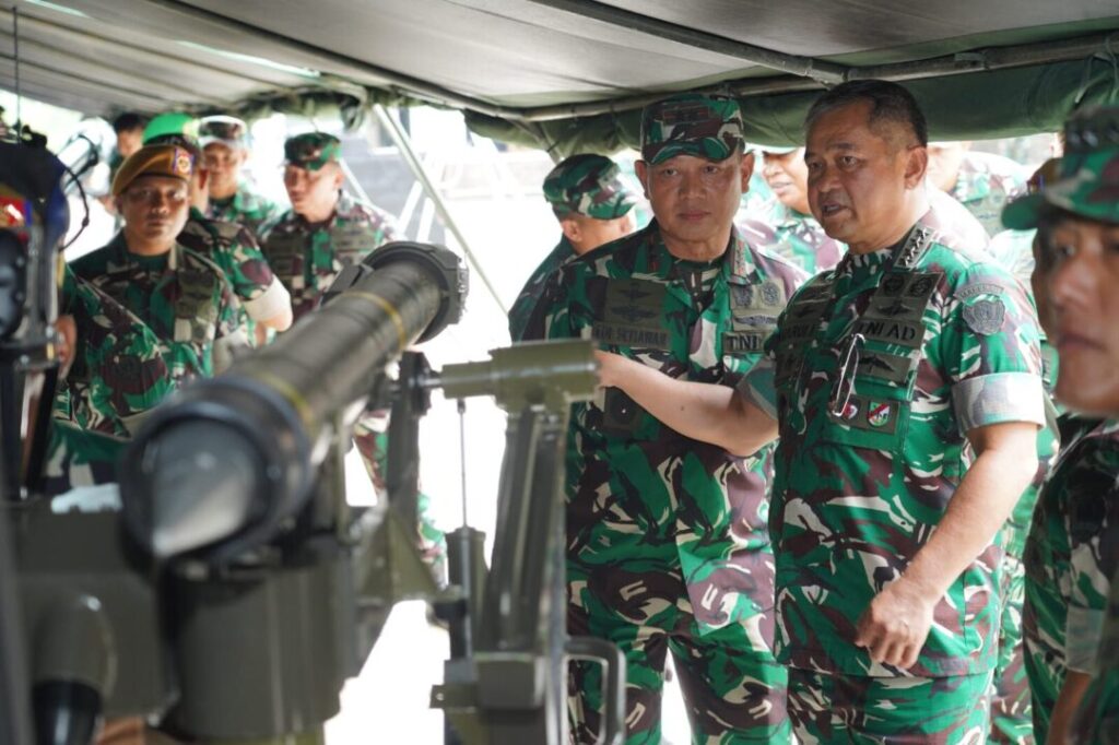 KARAWANG, Cakra101.com – Kepala Staf Angkatan Darat (KASAD) Jenderal TNI Maruli Simanjuntak, M.Sc., meninjau display inovasi hasil Penelitian dan Pengembangan Pertahanan (Litbanghan) TNI Angkatan Darat yang ditampilkan Dinas Penelitian dan Pengembangan TNI AD (Dislitbangad) di Resimen Latihan Tempur (Menlatpur) Kostrad, Sanggabuana, Karawang, Jawa Barat, Kamis (22/1/2026). Peninjauan ini dititikberatkan pada pemanfaatan hasil Litbanghan untuk memperkuat sistem latihan dan mendukung kesiapan operasi prajurit TNI AD.