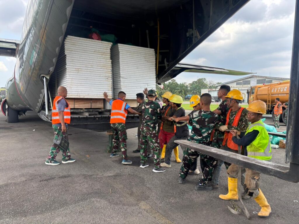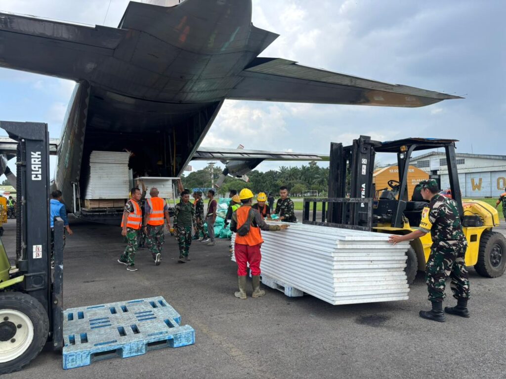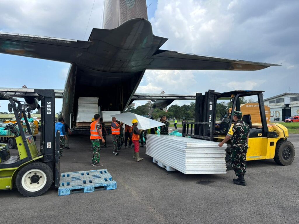 Material tersebut selanjutnya didistribusikan ke wilayah terdampak untuk mendukung pembangunan huntara bagi masyarakat yang kehilangan tempat tinggal. Selain material bangunan, pesawat juga mengangkut alat kesehatan seberat 1.500 Kg untuk memenuhi kebutuhan layanan medis di lokasi terdampak.