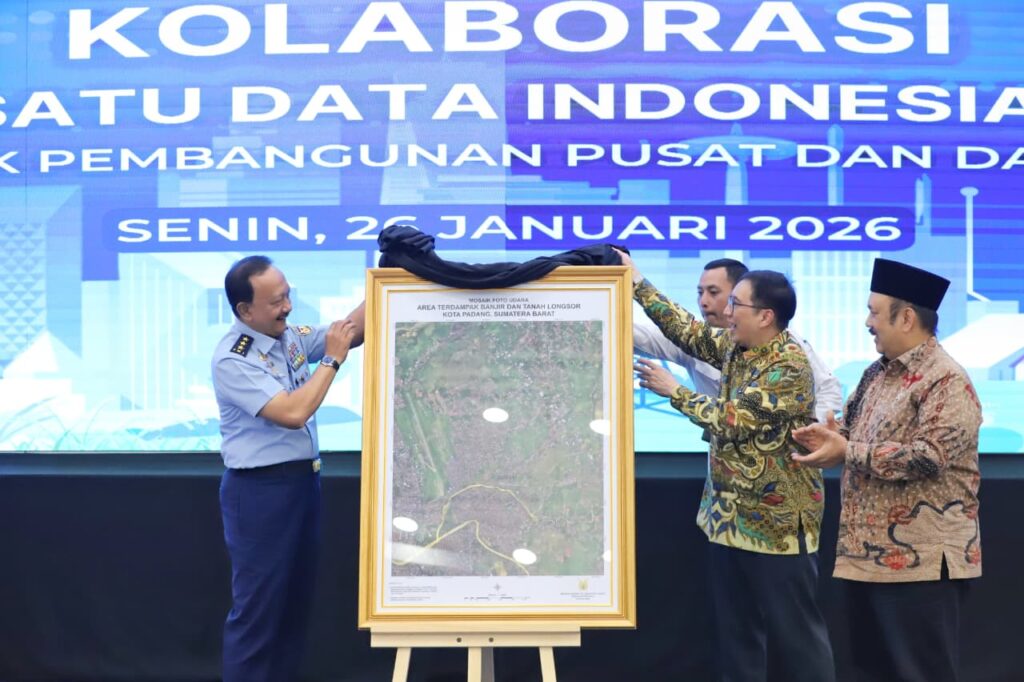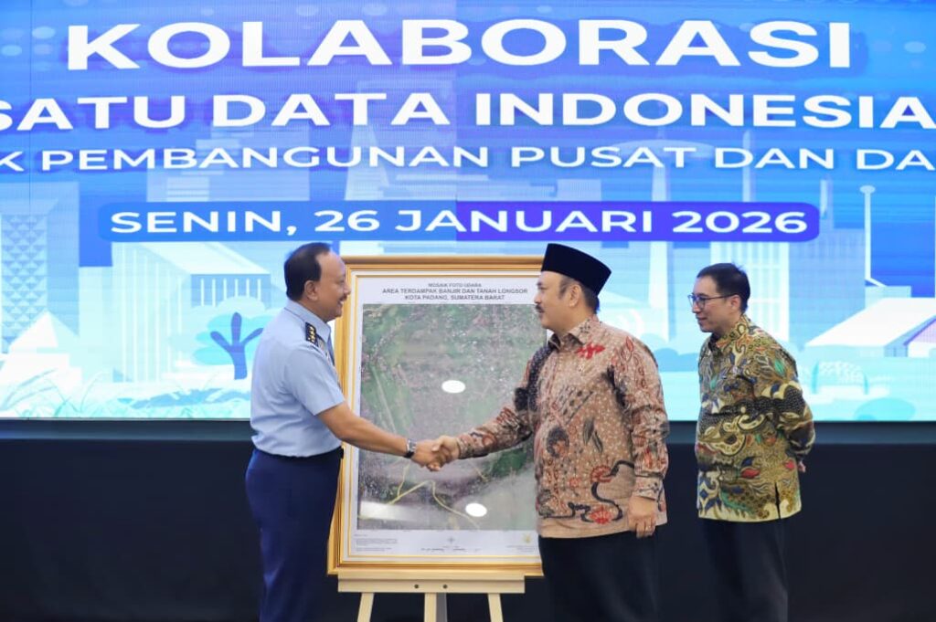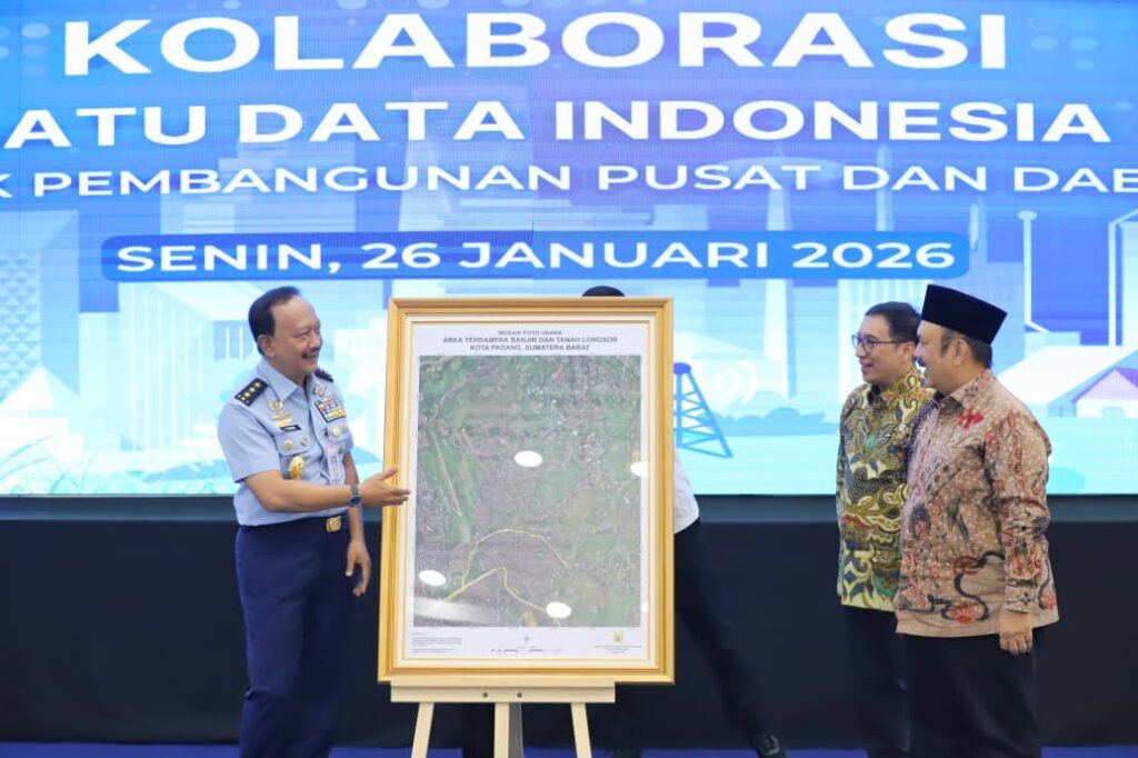 Hasil pemetaan tersebut kemudian diserahkan oleh Wakil Kepala Staf Angkatan Udara (Wakasau) Marsdya TNI Ir. Tedi Rizalihadi S., M.M., kepada Menteri PPN/Kepala Bappenas Prof. Dr. Ir. Rachmat Pambudy, M.S., bertepatan dengan penandatanganan Kolaborasi Satu Data Indonesia untuk Pembangunan Pusat dan Daerah di Gedung Bappenas, Jakarta Pusat, Senin (26/1/2026).