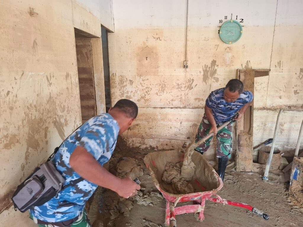 PADANG, Cakra101.com – Personel Lanud Sutan Sjahrir melanjutkan pembersihan permukiman warga pascabencana banjir di Perumahan Tabing Banda Gadang, Kecamatan Nanggalo, Kota Padang, Selasa (27/1/2026). Sejumlah rumah yang terdampak kini sudah mulai kembali layak huni setelah lumpur dan sisa material banjir berhasil dibersihkan.