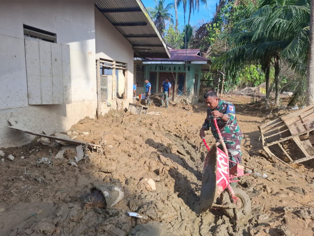 Pembersihan difokuskan pada area rumah warga, halaman, serta akses jalan yang tertutup endapan lumpur. Proses dilakukan secara bertahap sesuai kondisi di lapangan agar pemulihan lingkungan dapat berjalan lebih cepat.