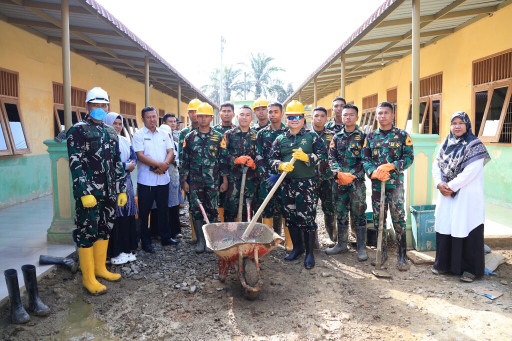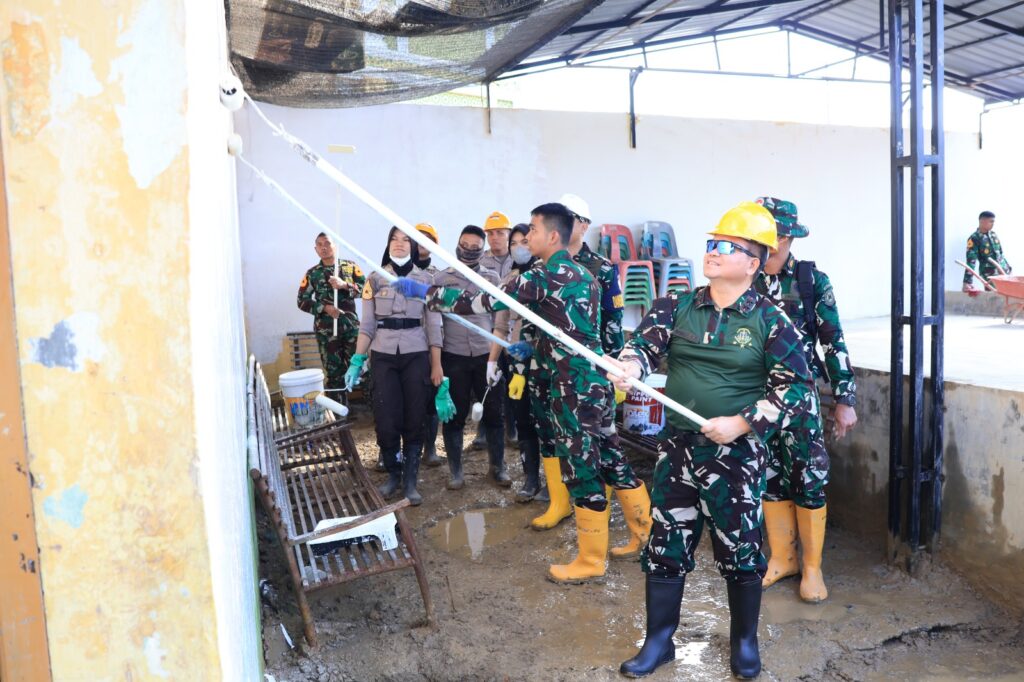 Bersama masyarakat setempat, para Taruna membersihkan sisa lumpur, mengangkut material yang terbawa arus, serta merapikan kembali lingkungan sekolah dan tempat ibadah agar dapat segera digunakan seperti semula.