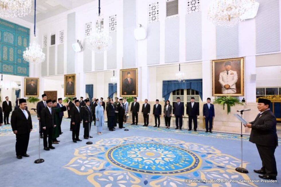 Presiden Prabowo memimpin sumpah jabatan dan diikuti para anggota yang dilantik. “Demi Allah saya bersumpah; demi Tuhan saya berjanji, bahwa saya akan setia kepada UUD Negara Republik Indonesia tahun 1945, serta akan menjalankan segala peraturan perundang-undangan dengan selurus-lurusnya demi dharma bakti saya kepada bangsa dan negara,” ucap Presiden.