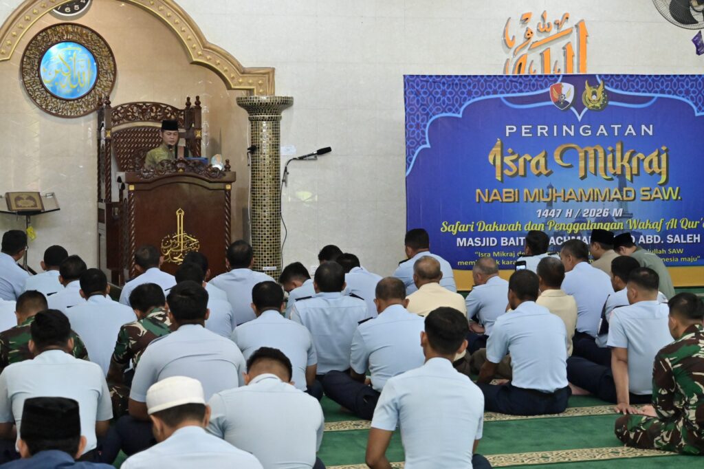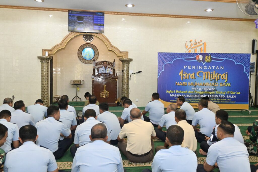 MALANG, Cakra101.com – Lanud Abd Saleh memperingati Isra Mikraj Nabi Muhammad SAW 1447 Hijriah/2026 Masehi dengan khidmat di Masjid Baiturrachman, Kota Malang, Kamis (29/1/2026). Kegiatan ini menjadi momentum spiritual untuk memperkuat keimanan sekaligus membangun karakter prajurit TNI AU yang berakhlak mulia, profesional, dan berintegritas.