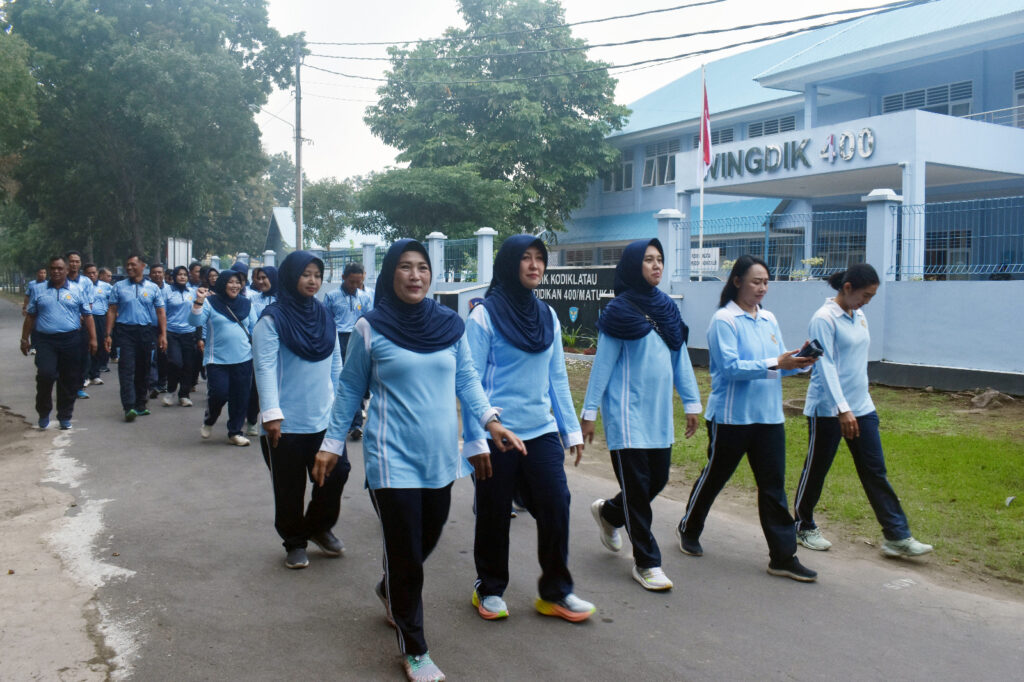 Usai pemanasan, kegiatan dilanjutkan dengan jalan santai mengelilingi lingkungan Wingdik 400/Matukjur dan Skadik jajaran. Kegiatan ini tidak hanya menjadi sarana olahraga ringan, tetapi juga menjadi momen kebersamaan yang hangat, di mana para peserta dapat saling berinteraksi dan mempererat hubungan kekeluargaan.