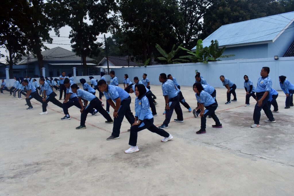 Olahraga bersama diawali dengan pemanasan yang diikuti seluruh peserta guna menghindari cedera dan mempersiapkan kondisi fisik sebelum kegiatan inti. Suasana penuh semangat dan kebersamaan tampak sejak awal kegiatan, mencerminkan antusiasme seluruh peserta dalam mengikuti rangkaian olahraga bersama tersebut.