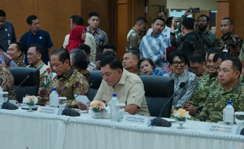 JAKARTA, Cakra101.com – Panglima TNI Jenderal TNI Agus Subiyanto bersama Kepala Staf TNI Angkatan Darat Jenderal TNI Maruli Simanjuntak, Kepala Staf TNI Angkatan Laut Laksamana TNI Muhammad Ali, serta Kepala Staf TNI Angkatan Udara Marsekal TNI Mohamad Tonny Harjono mendampingi Menteri Pertahanan Republik Indonesia Sjafrie Sjamsoeddin menghadiri Entry Meeting Pemeriksaan atas Laporan Keuangan Kementerian Pertahanan Tahun Anggaran 2025 sekaligus Penyerahan Laporan Hasil Pemeriksaan (LHP) Semester II Tahun 2025 oleh Badan Pemeriksa Keuangan Republik Indonesia (BPK RI), di Kantor BPK RI, Jakarta Pusat, Jumat (30/1/2026).