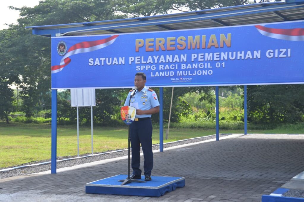 PASURUAN, Cakra101.com – Danlanud Muljono, Kolonel Pnb Ahmad Mulyono, S.E., M.M., meresmikan Satuan Pelayanan Pemenuhan Gizi (SPPG) Raci Bangil 01 yang berlokasi di Detasemen Raci Lanud Muljono, Pasuruan, Kamis (29/1/2026).