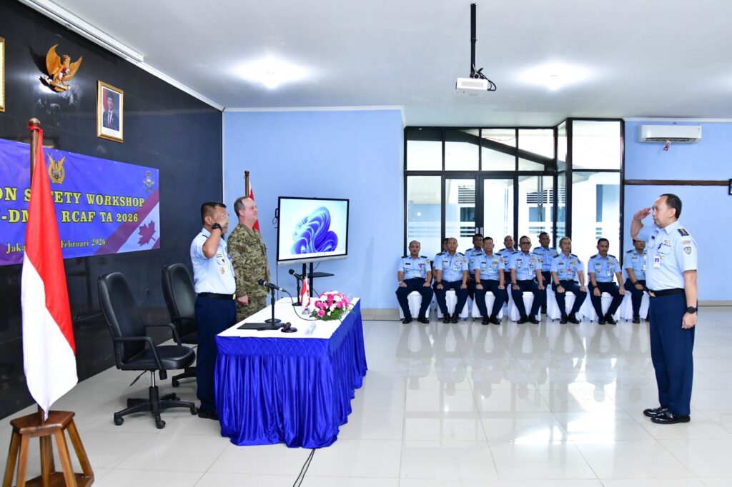 JAKARTA, Cakra101.com – TNI Angkatan Udara melalui Pusat Kelaikan Keselamatan Terbang dan Kerja TNI Angkatan Udara (Puslaiklambangjaau) bekerja sama dengan Royal Canadian Air Force (RCAF) Directorate of Military Training and Cooperation (DMTC) menyelenggarakan Aviation Safety Workshop Tahun Anggaran 2026 di Skadik 505 Pusbahasa, Jakarta, Senin (2/2/2026). Workshop tersebut dibuka oleh Wakapuslaiklambangjaau, Marsma TNI Dodi Fernando, S.E., M.Soc.
