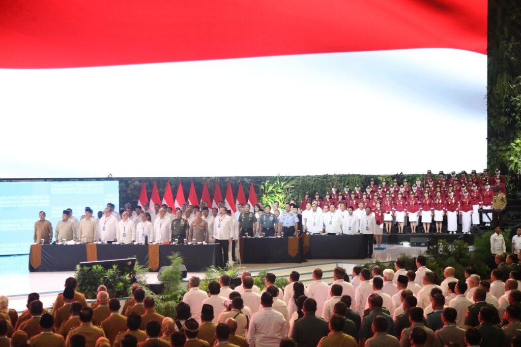 Presiden RI juga mengajak seluruh elemen bangsa, baik di tingkat pusat maupun daerah, untuk terus menjaga persatuan dan integritas nasional serta mengawal pembangunan menuju terwujudnya Indonesia Emas 2045.