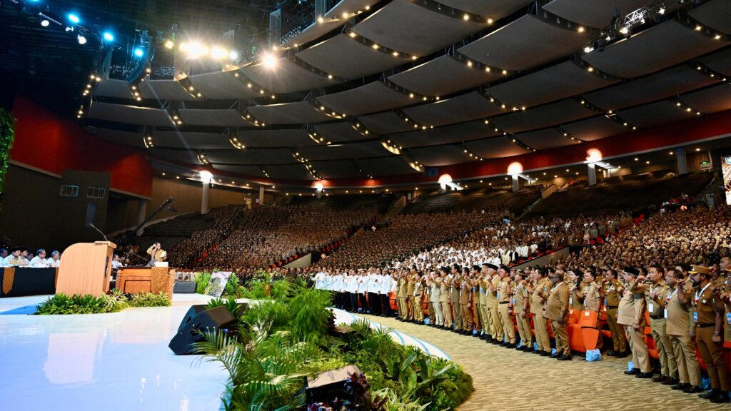 Rakornas tersebut mengusung tema “Sinergi Pusat dan Daerah dalam Implementasi Program Prioritas Presiden Menuju Indonesia Emas 2045” dan diikuti oleh 4.011 peserta yang berasal dari unsur kementerian, lembaga, pemerintah daerah, serta Forkopimda.