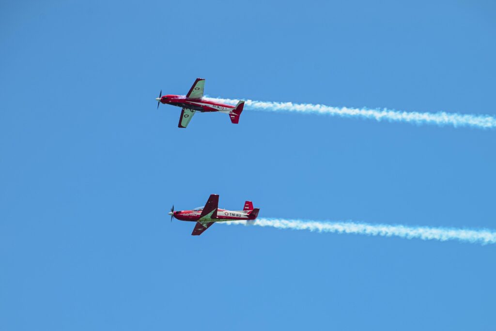 Dipimpin Flight Leader Letkol Pnb Ari Nugroho Widodo The Jupiters menyuguhkan pertunjukan dengan tingkat presisi tinggi serta kekompakan formasi yang memikat perhatian penonton.