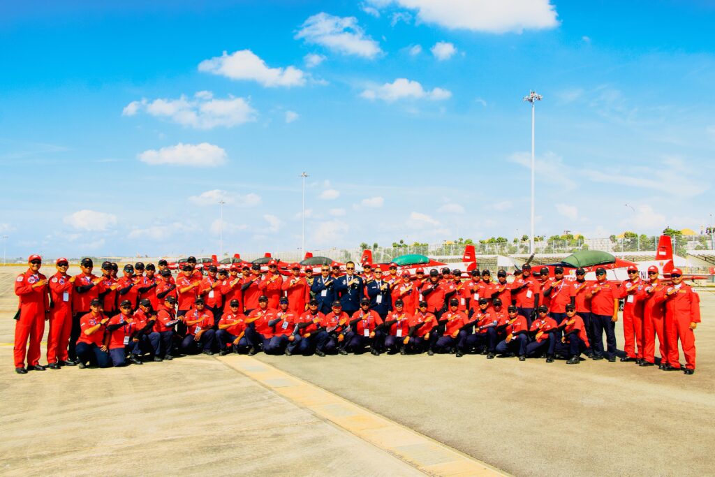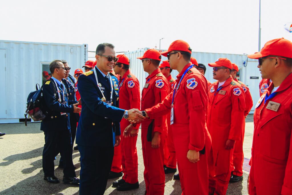 Usai seluruh pesawat mendarat, Wadankodiklatau Marsda TNI Benny Arfan, M.MP., MMDS., MSS., menghampiri para penerbang dan crew untuk menyampaikan salam hormat dan rasa bangga Kepala Staf Angkatan Udara (Kasau) atas penampilan JAT di pembukaan SAS 2026.
