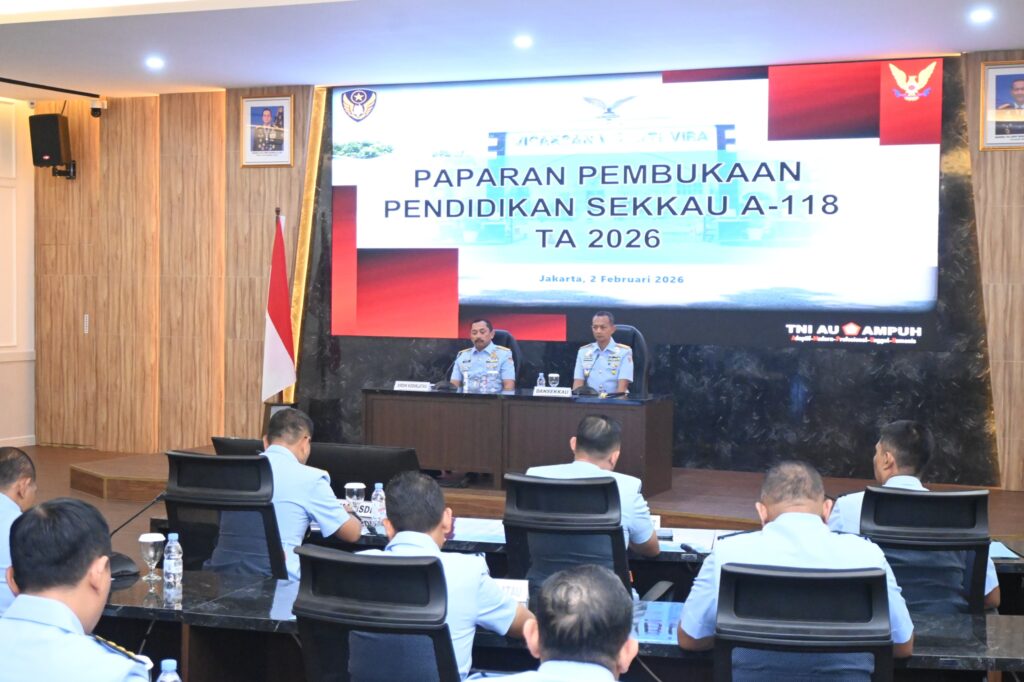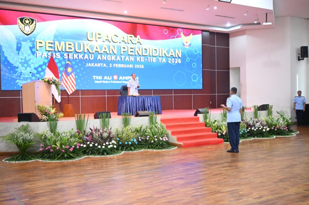 JAKARTA, Cakra101.com – Sebanyak 105 perwira mengikuti Pendidikan Sekolah Komando Kesatuan TNI Angkatan Udara (Sekkau) angkatan ke-118 yang resmi dimulai pada Senin (2/2/2026). Pembukaan pendidikan dipimpin Komandan Sekkau Marsma TNI Arief Budiman, S.T., PSC(J)., mewakili Komandan Kodiklatau Marsdya TNI Dr. T.B.H. Age Wiraksono, S.I.P., M.A., di Gedung Pramansala, Sekkau, Jakarta Timur.