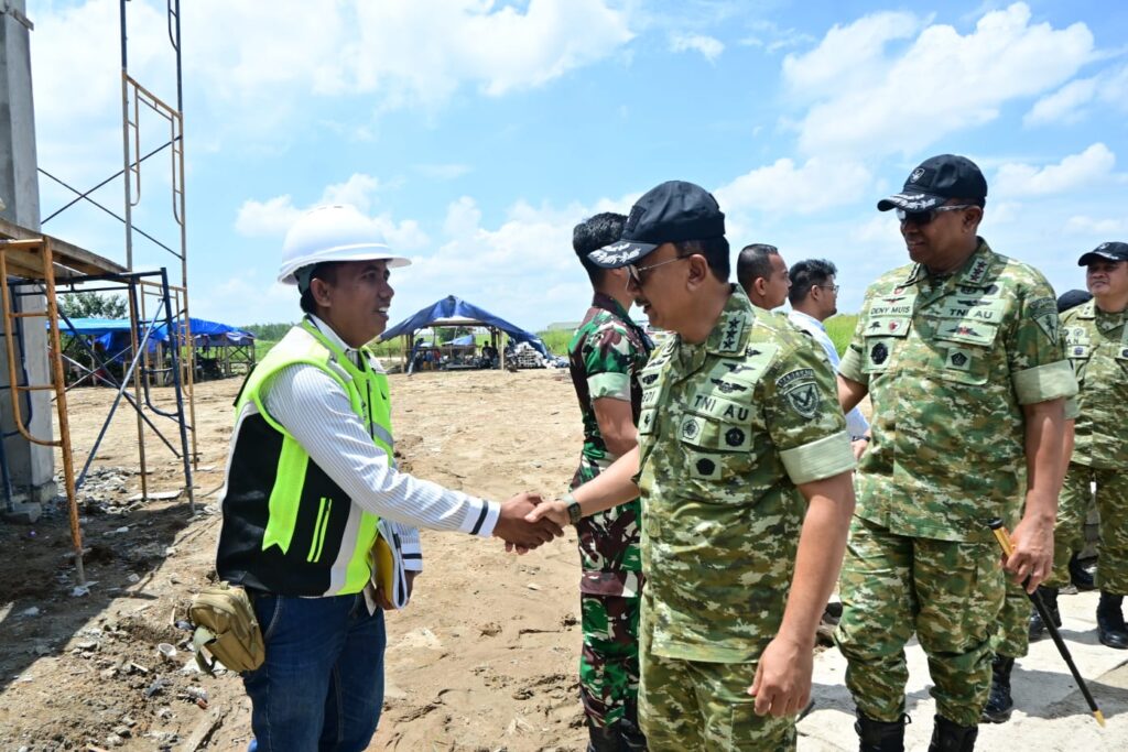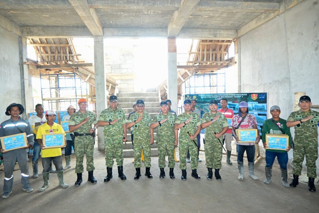 Usai menyaksikan latihan, Wakasau meninjau pembangunan Batalyon Parako 464 Lampung. Pembangunan satuan ini merupakan bagian dari upaya penguatan postur pertahanan TNI AU, khususnya di jajaran Korpasgat, untuk mewujudkan kekuatan udara yang adaptif, modern, profesional, dan unggul.