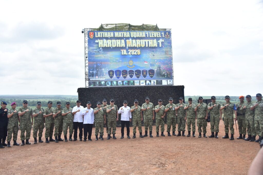 TULANG BAWANG, Cakra101.com – Wakil Kepala Staf Angkatan Udara (Wakasau) Marsdya TNI Ir. Tedi Rizalihadi S., M.M., mewakili Kasau Marsekal TNI M. Tonny Harjono, S.E., M.M., menyaksikan Latihan Hardha Marutha 1 Tahun Anggaran 2026 di Air Weapon Range (AWR) Lanud Pangeran M. Bun Yamin, Kabupaten Tulang Bawang, Lampung, Rabu (4/2/2026).