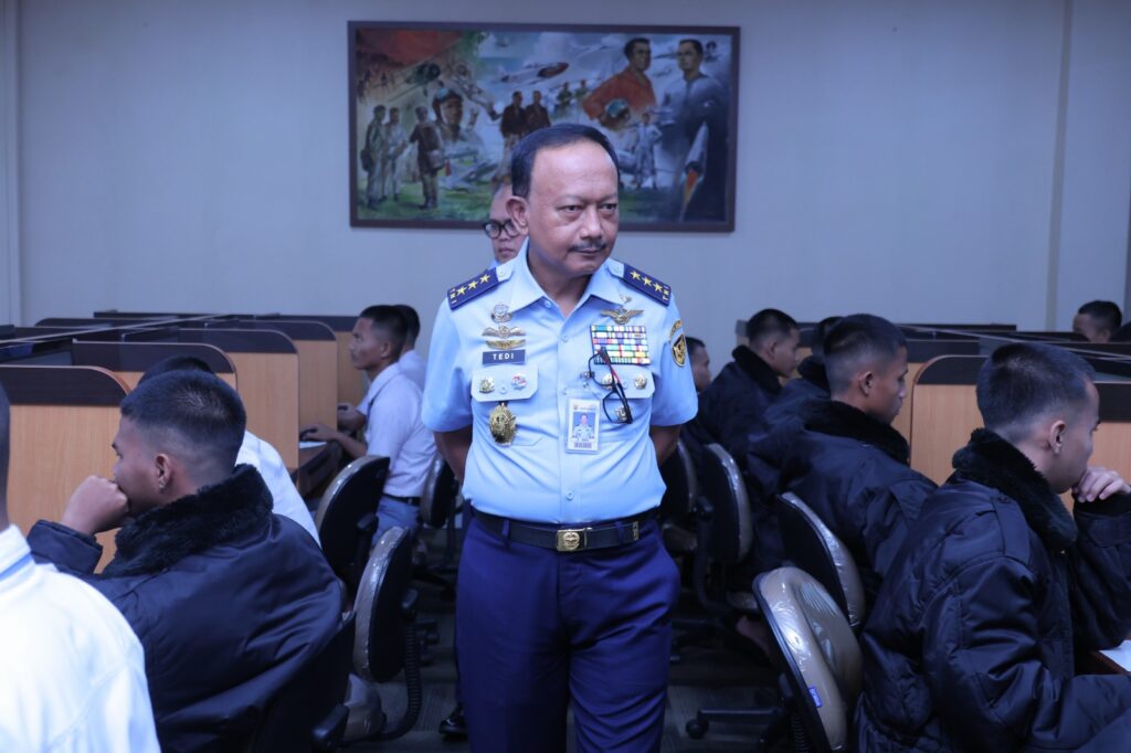 ‎Wakil Kepala Staf Angkatan Udara (Wakasau) Marsdya TNI Ir. Tedi Rizalihadi S., M.M., saat meninjau pelaksanaan test memberikan arahan kepada para kadet agar menjalani setiap tahapan dengan kesungguhan, disiplin, dan semangat juang yang tinggi.