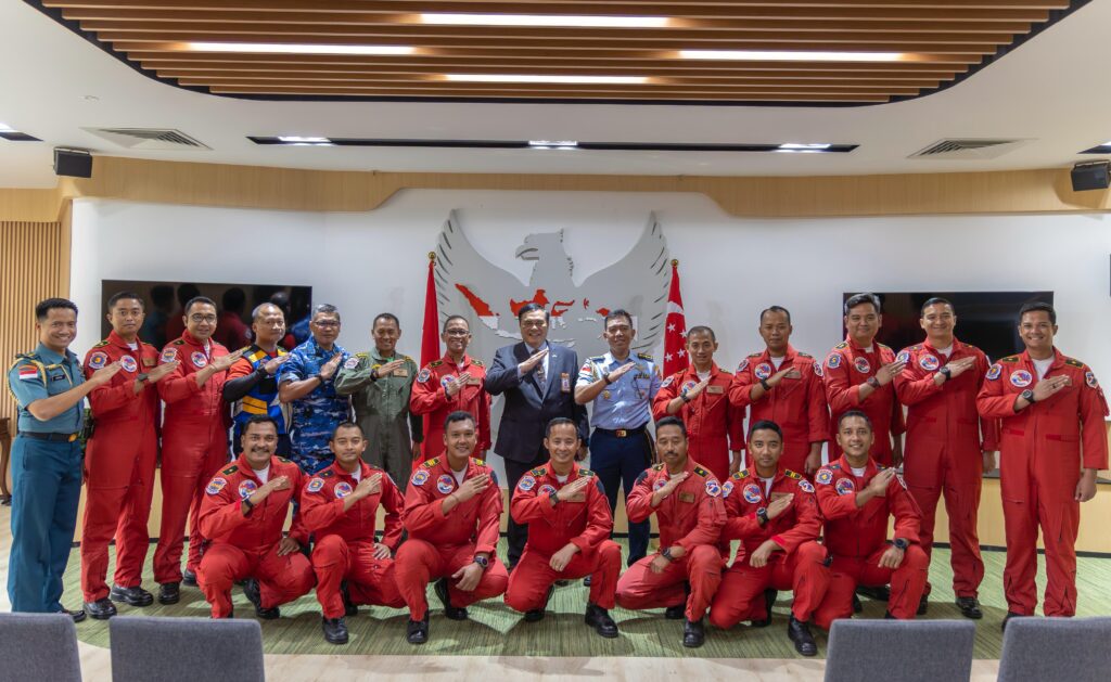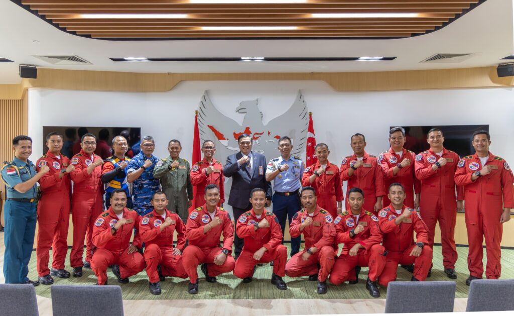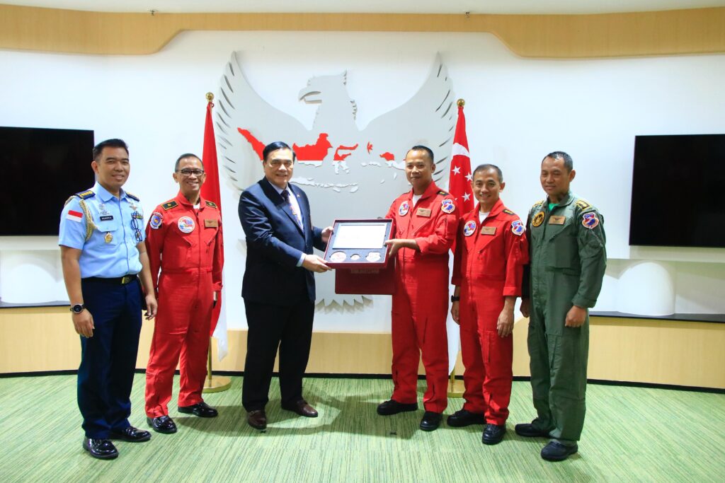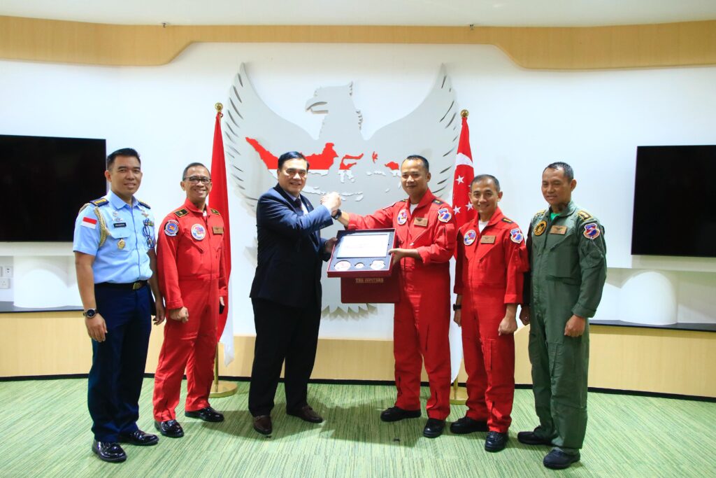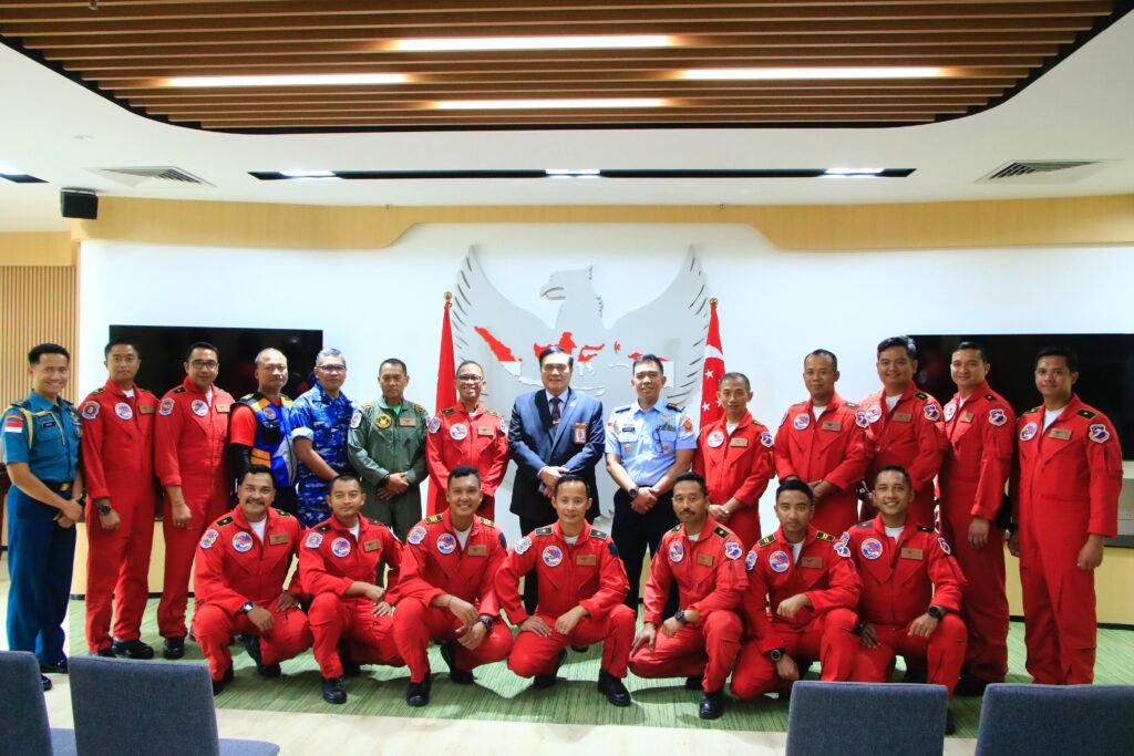 SURABAYA Cakra101.com –Di sela keikutsertaan pada ajang Singapore Airshow 2026, Jupiter Aerobatic Team (JAT) mengunjungi Kedutaan Besar Republik Indonesia (KBRI) Singapura, Jumat (6/2/2026). Rombongan dipimpin oleh Dirlat Kodiklatau Marsma TNI Bambang Juniar Djatmiko, S.Sos.
