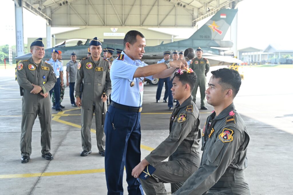 PEKANBARU, Cakra101.com Skadron Udara 16 Wing Udara 3.1 Grup 3 Tempur kembali melahirkan elang-elang muda setelah dua penerbang sukses melaksanakan terbang solo menggunakan pesawat tempur F-16. Keberhasilan tersebut ditandai melalui Tradisi Terbang Solo Transisi VI yang digelar di Shelter Skadron Udara 16 Wing Udara 3.1 Tempur, Rabu (4/2/2026).