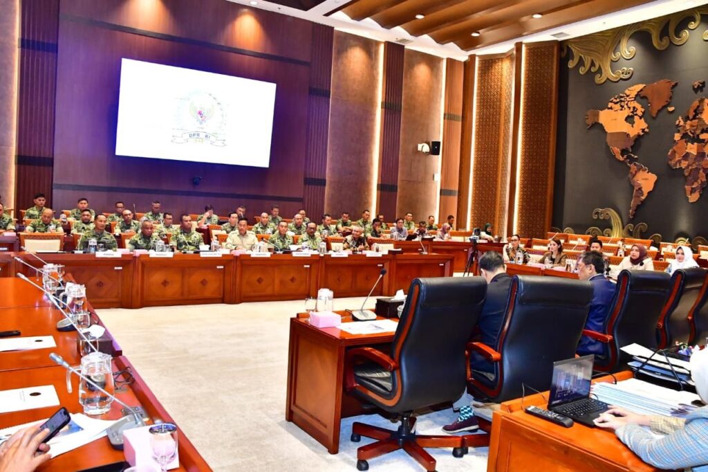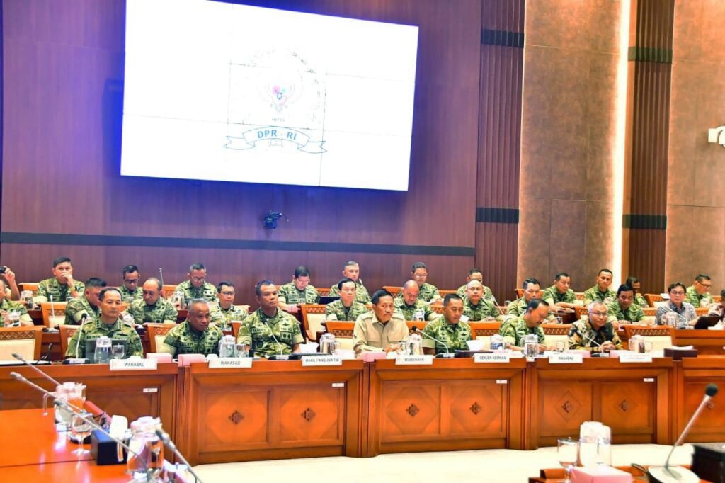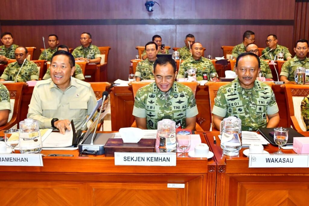 Rapat kerja turut dihadiri Wakil Panglima TNI, para Wakil Kepala Staf Angkatan, serta pejabat Kementerian Pertahanan dan TNI.