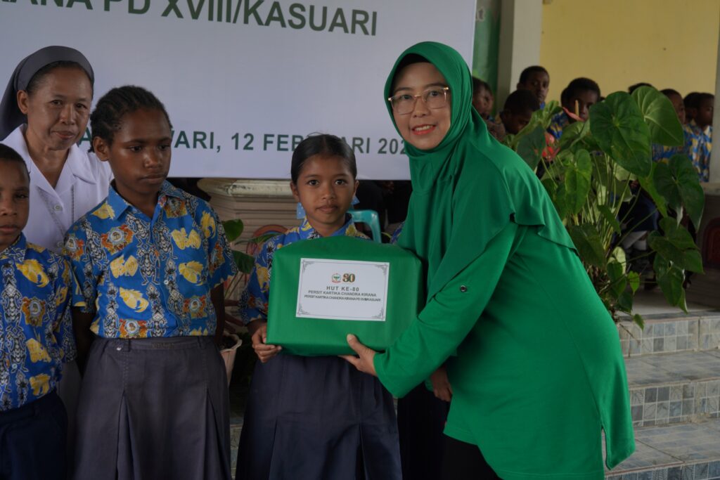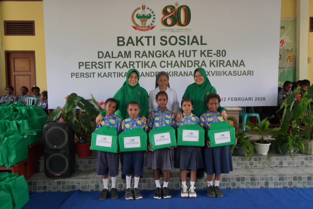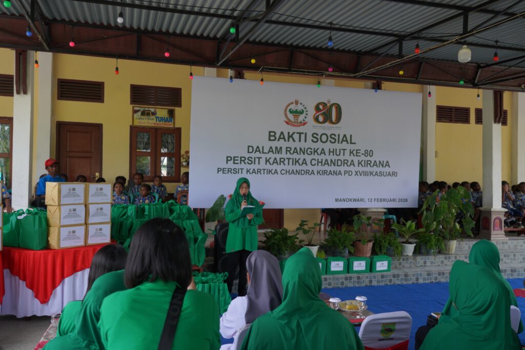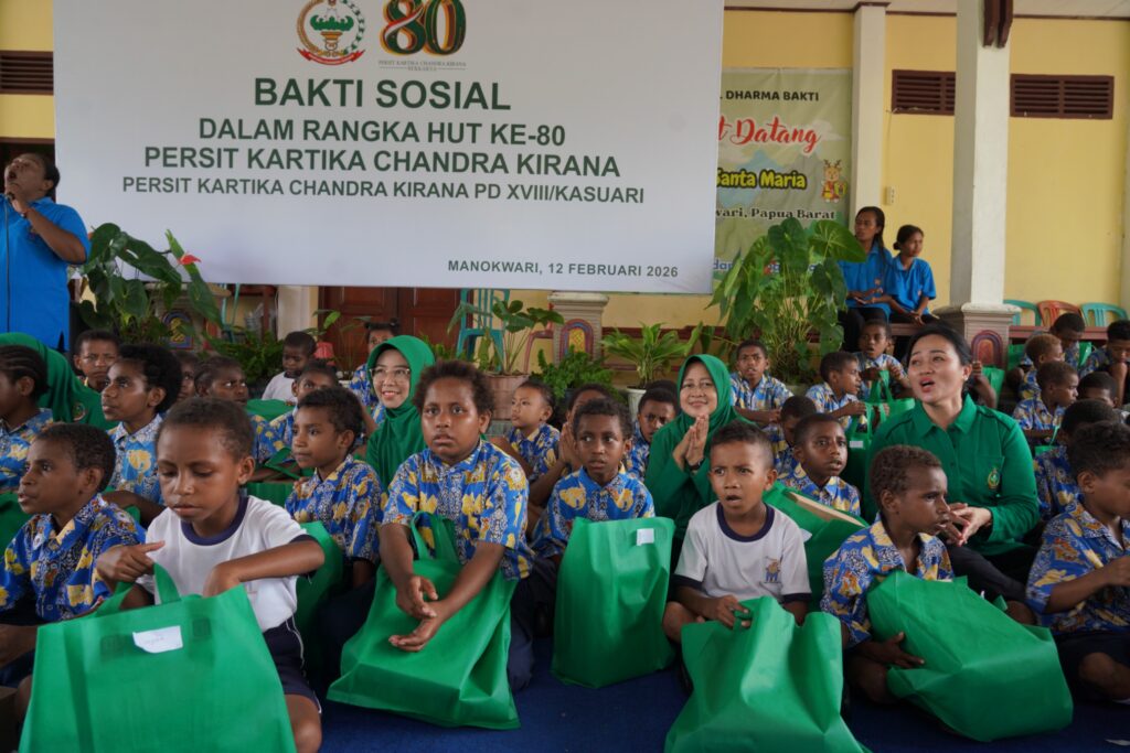 MANOKWARI, Cakra101.com – Dalam rangka memperingati Hari Ulang Tahun ke-80 Persit Kartika Chandra Kirana, Persit KCK PD XVIII/Kasuari menggelar bakti sosial di Panti Asuhan Santa Maria Yayasan Amal Dharma Bakti, SP 8 Masni, Kabupaten Manokwari, Kamis (12/2/2026).