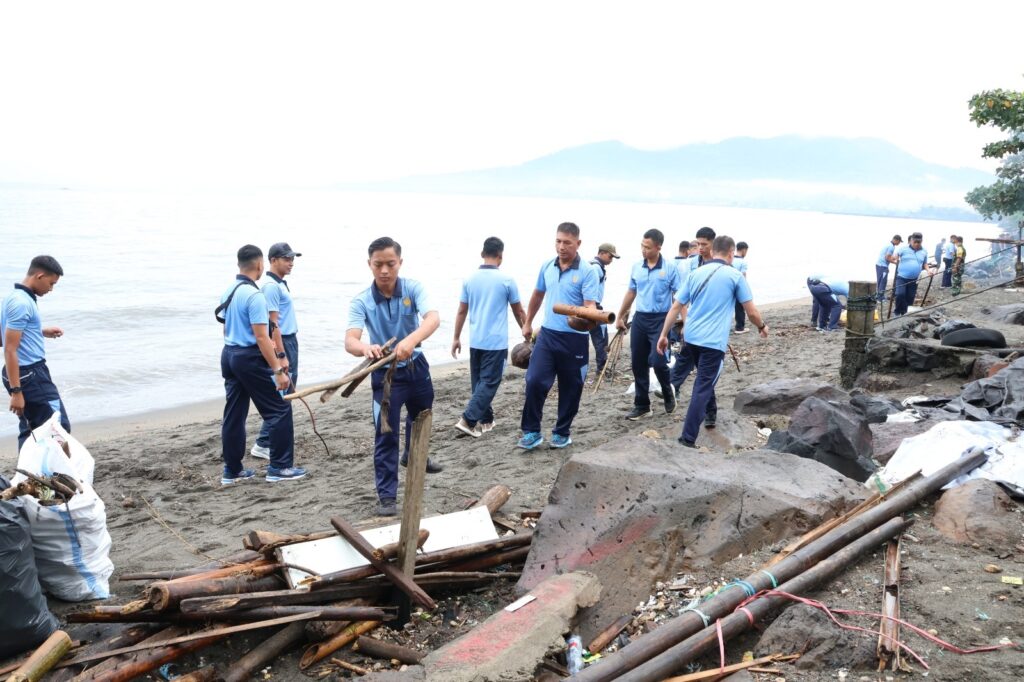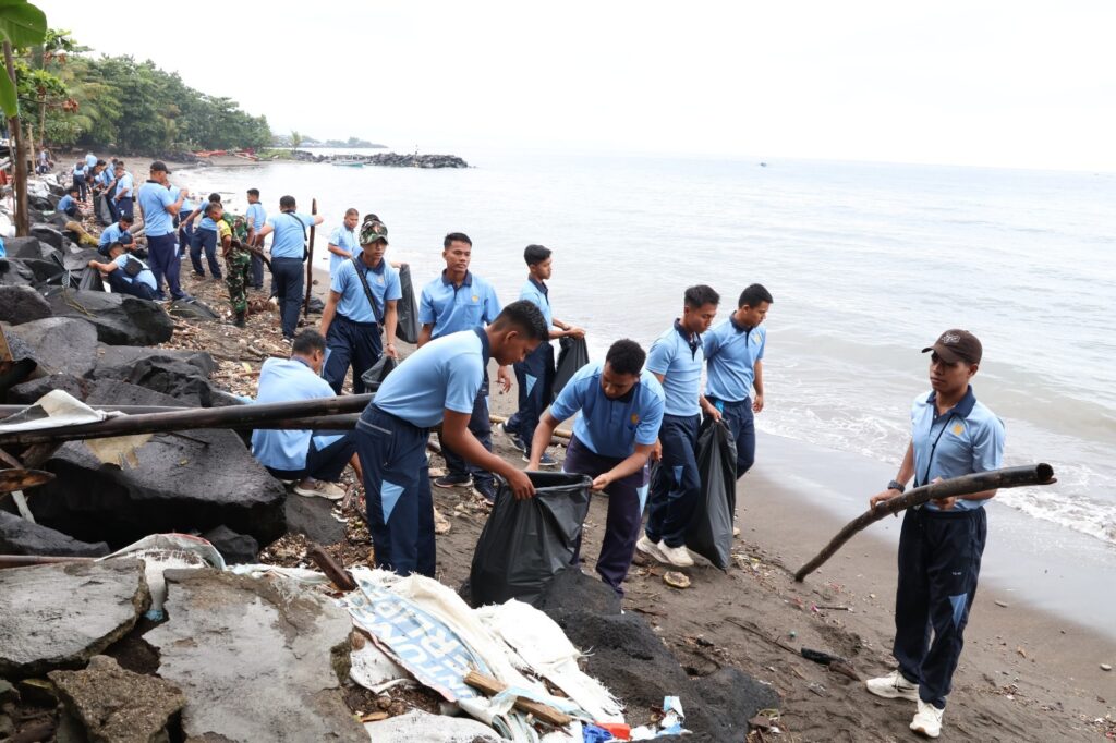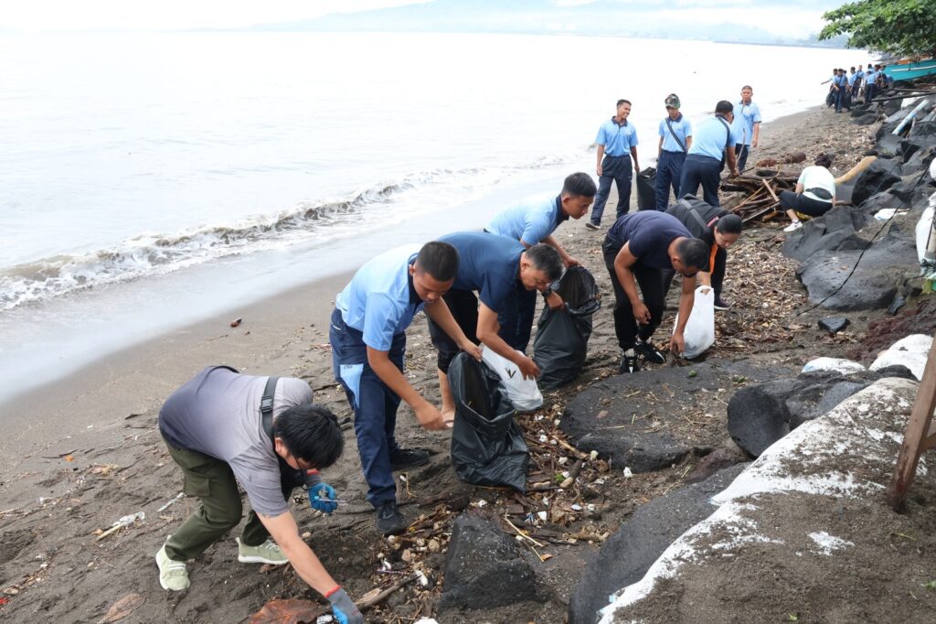 Komitmen tersebut diwujudkan melalui aksi bersih-bersih pesisir Pantai Boulevard II, Manado, Jumat (20/2/2026). Aksi pembersihan dipimpin oleh Kadister Lanud Sam Ratulangi Kolonel Tek Suherman, M.Han., dengan sasaran sampah plastik, limbah rumah tangga, serta material lain yang mencemari garis pantai dan berpotensi merusak ekosistem laut.