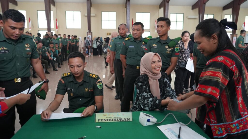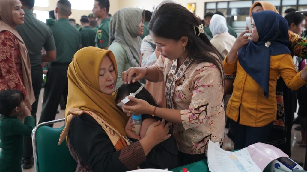 Dalam kegiatan tersebut, para prajurit dan Persit berkesempatan melaksanakan pemeriksaan darah sebagai langkah deteksi dini kondisi kesehatan. Sementara itu, bayi dan balita menerima tambahan gizi serta vitamin yang diserahkan langsung oleh Ketua Persit, menghadirkan senyum dan harapan bagi tumbuh kembang generasi penerus.
