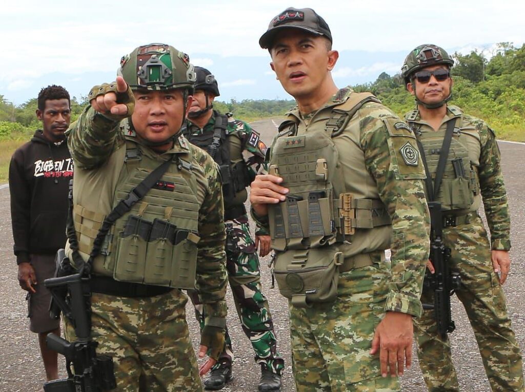 BOVEN DIGOEL, Cakra101.com – Pangkodau III Marsda TNI Dr. Azhar Aditama D., S.Sos., M.M., M.Han., mendampingi Pangkogabwilhan III Letjen TNI Bambang Trisnohadi meninjau Pos Pasgat di Bandar Udara Manggelum, Kabupaten Boven Digoel, Papua Selatan, Senin (3/2/2025).