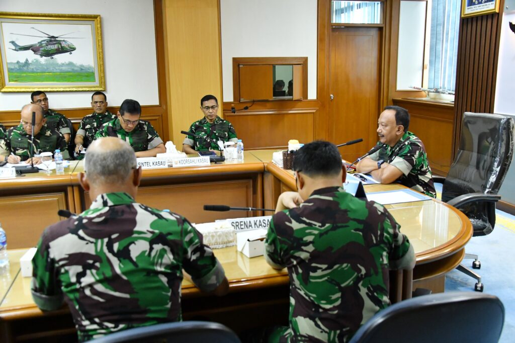 Rapat tersebut turut dihadiri oleh Wairjenau, Koorsahli Kasau, para Asisten Kasau, para Kapus, para Komandan, serta Kepala Dinas jajaran Mabesau, sebagai bagian dari upaya memastikan kebijakan berjalan efektif dan terkoordinasi.