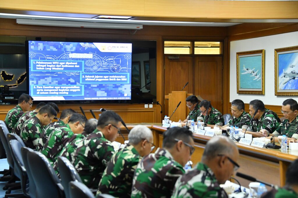 JAKARTA, Cakra101.com — Wakil Kepala Staf Angkatan Udara (Wakasau) Marsdya TNI Ir. Tedi Rizalihadi S., M.M. memimpin rapat pelaksanaan Work From Home (WFH) di lingkungan Mabesau yang digelar di Cilangkap, Jakarta Timur pada Rabu (8/4/2026).