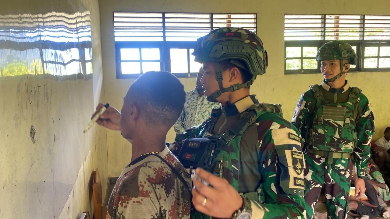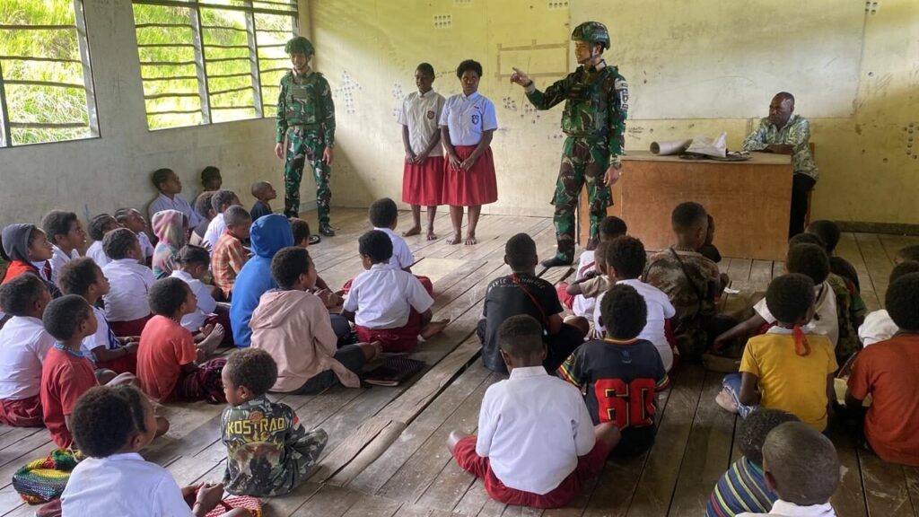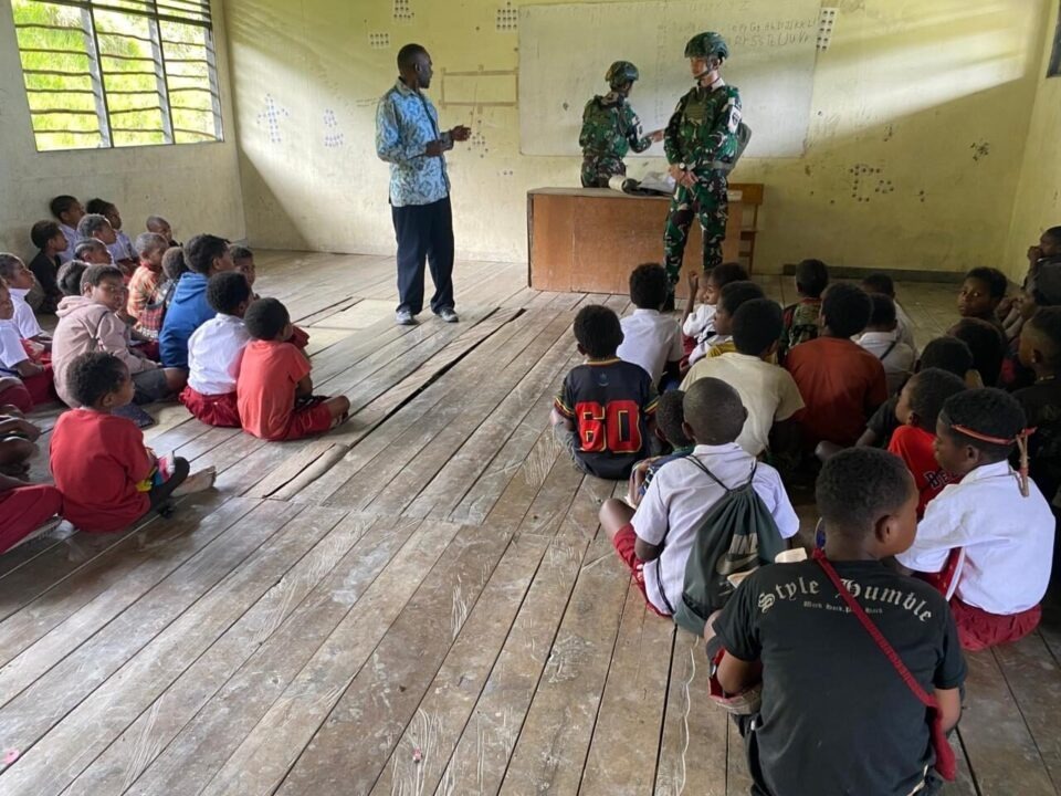 PUNCAK JAYA, Cakra101.com — Kehadiran Satgas Pamtas RI–PNG Yonif 136/Tuah Sakti di Distrik Kalome, Kabupaten Puncak Jaya, Papua Tengah membangkitkan semangat belajar anak-anak perbatasan melalui kegiatan mengajar dan pemberian bantuan pendidikan di SD Negeri Kalome, Selasa (14/4/2026).