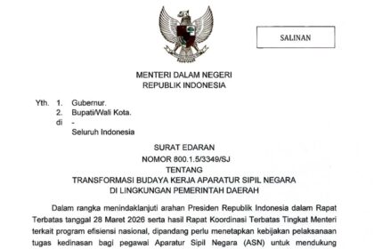 JAKARTA, Cakra101.com — Pemerintah melalui Kementerian Dalam Negeri Republik Indonesia menetapkan kebijakan transformasi budaya kerja Aparatur Sipil Negara (ASN) di lingkungan pemerintah daerah (pemda...