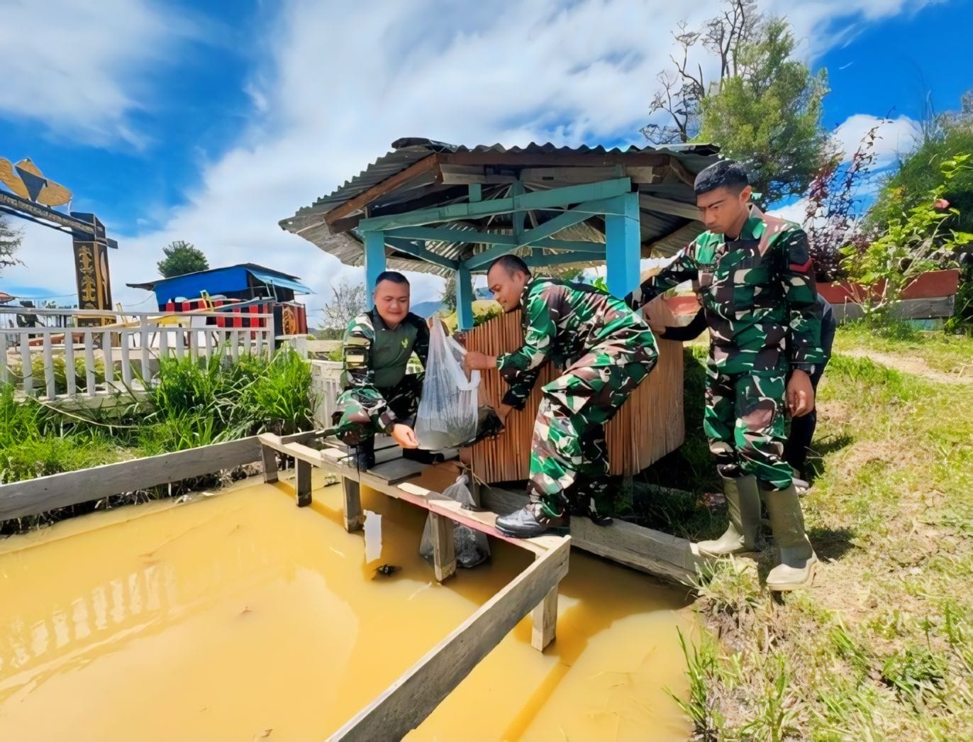 Cakra101, Papua.- Prajurit Satgas Pamtas Mobile Yonif 509 Condromowo Kostrad, Koops Habema, melaksanakan Penanaman Sayur dan penaburan benih ikan sebagai wujud Integrated Farming dengan memanfaatkan L...