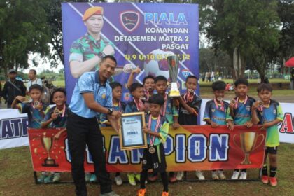 MALANG, Cakra101.com – Peringatan Hari Ulang Tahun (HUT) ke-12 Denmatra 2 Pasgat diwarnai Turnamen Sepak Bola Usia Dini memperebutkan Piala Dandenmatra 2 Pasgat di Lapangan Kusnan Hadi, Lanud Ab...